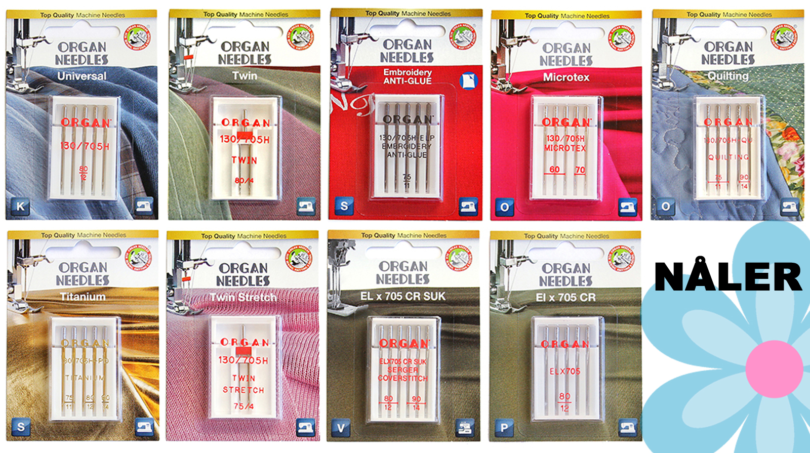 Uansett hvor avansert symaskin du har, er det viktig å velge korrekt nål for å få best mulig sømresultat. Det er også viktig å bytte nål ofte. En bøyd, butt eller sliten nål gjør mer skade enn nytte. En skadet nål ødelegger fibrene i stoffet, forårsaker hoppesting og motarbeider trådspenningen.