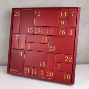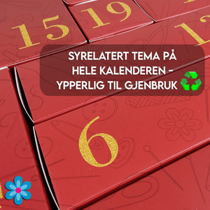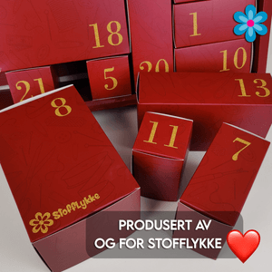 Vi har planlagt lenge, og endelig er denne en realitet! Vår helt egen stoff- og syrelaterte adventskalender. Og vi har designet den selv, med syrelaterte elementer på eskene. Og vi har såklart sneket inn Stofflykkeblomsten her og der. 😍