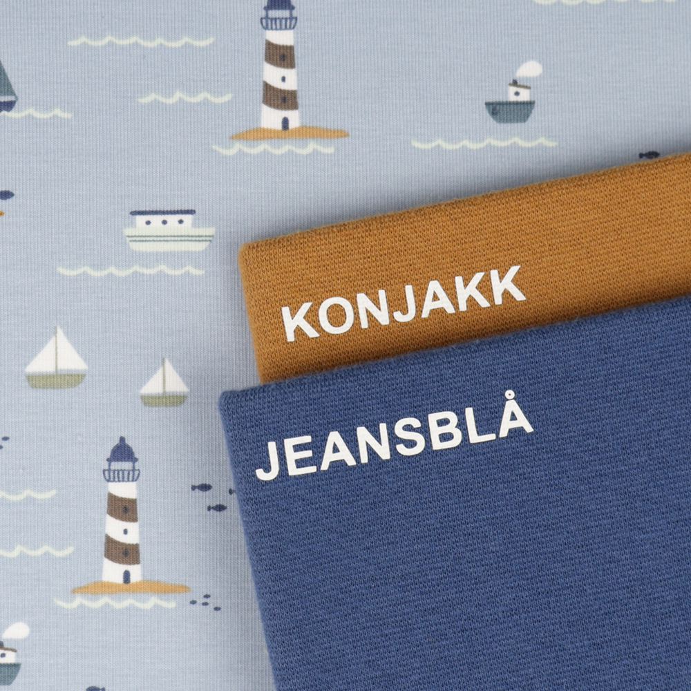 Bomullsjersey er et mykt og behagelig stoff med god stretch og pusteevne. Kvaliteten består av bomull med en liten andel elastan, noe som gir både komfort og fleksibilitet. Stoffet er lett å sy med og perfekt til plagg som skal sitte godt, men samtidig være komfortable å bruke.