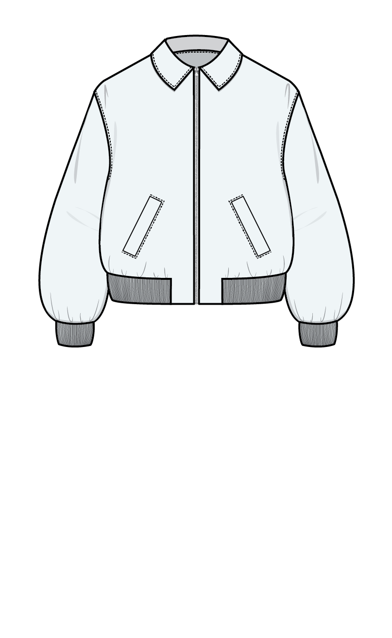 BOMBER JACKET er en løs og komfortabel jakke med klassiske bomberdetaljer. Modellen har krage, ribb i ermer og nederkant, samt valgfrie stikklommer. Jakken er helfôret og lukkes med glidelås i front med tilhørende stolpe for en pen finish.