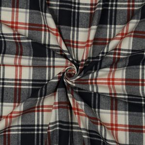 Myk og lun flanell i ren bomull med en børstet overflate som gir en deilig, varm følelse mot huden. Stoffet har en naturlig pusteevne og en lett, myk struktur som gjør det svært behagelig å bruke, spesielt på kjøligere dager.