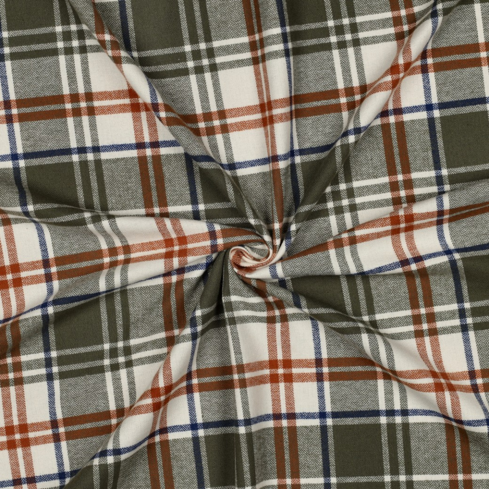 Myk og lun flanell i ren bomull med en børstet overflate som gir en deilig, varm følelse mot huden. Stoffet har en naturlig pusteevne og en lett, myk struktur som gjør det svært behagelig å bruke, spesielt på kjøligere dager.