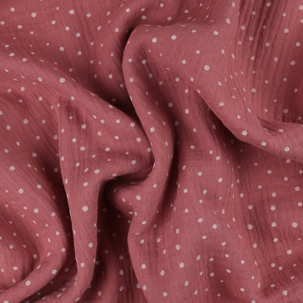 Musselin, også kalt double gauze, er et mykt og luftig bomullsstoff bestående av to tynne lag som er vevd sammen med små nesten usynlige sting. Stoffet er lett, pustende og har en deilig krøllete struktur som gir et naturlig og avslappet uttrykk.