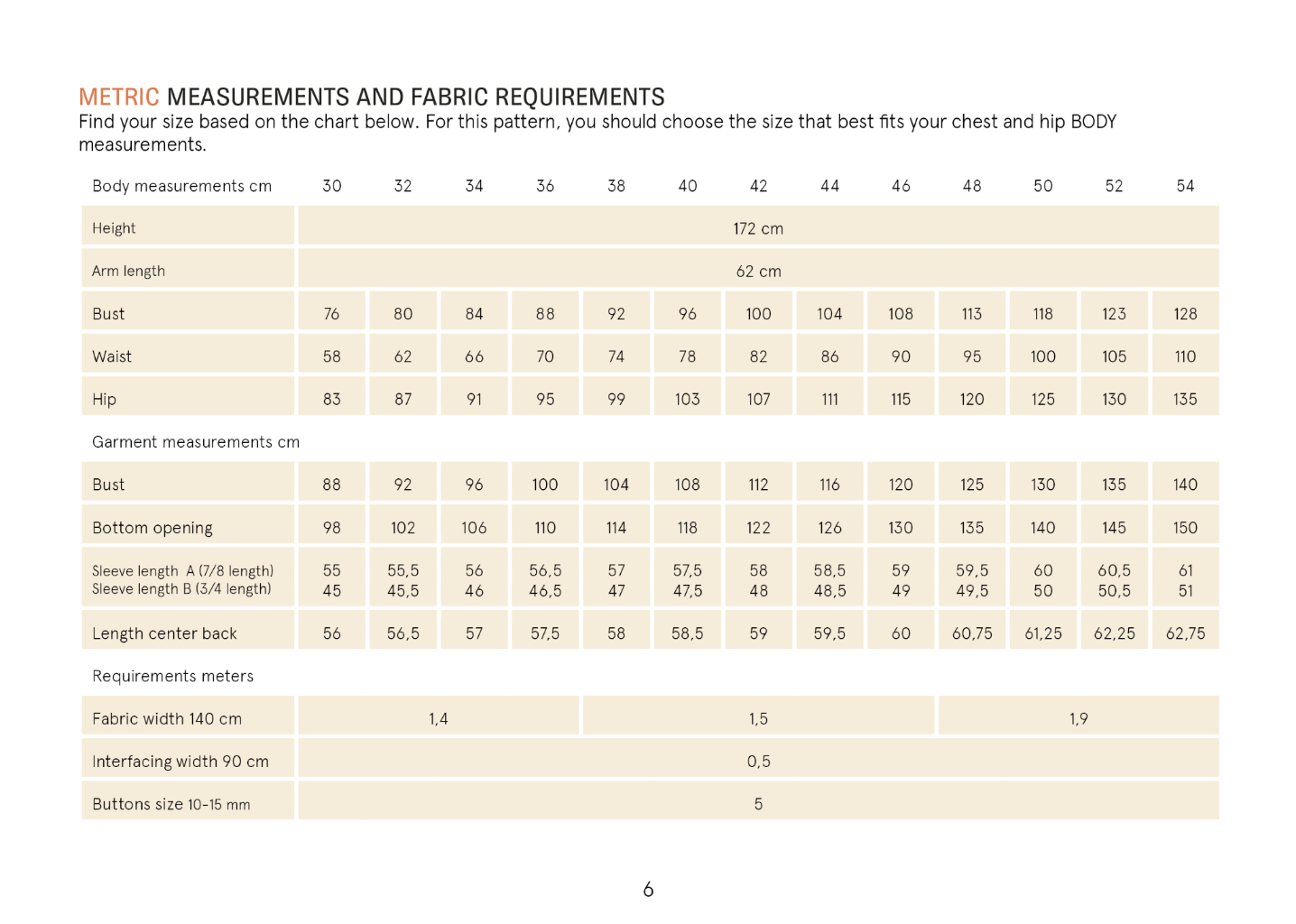 | Mønsterstørrelse | 30-54 |