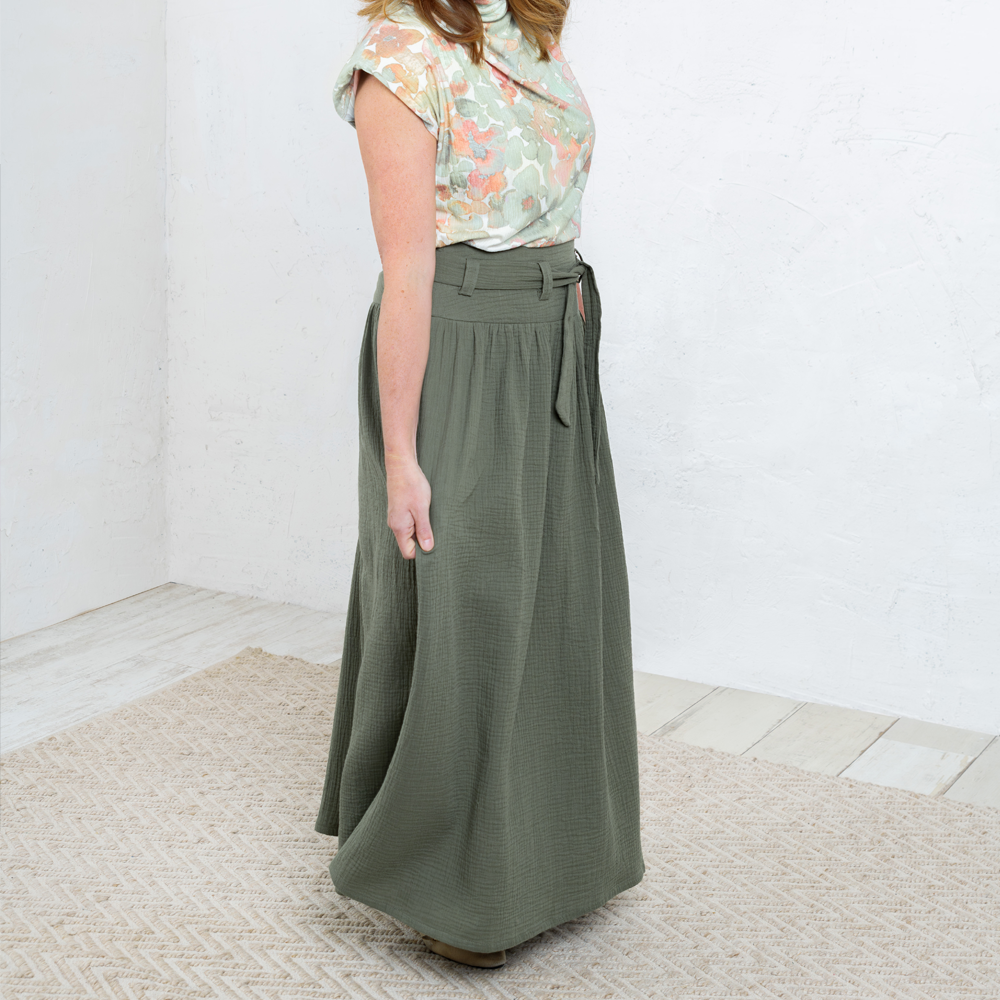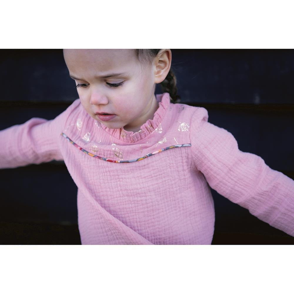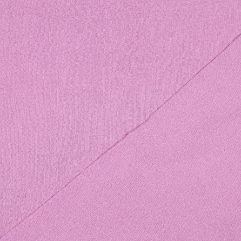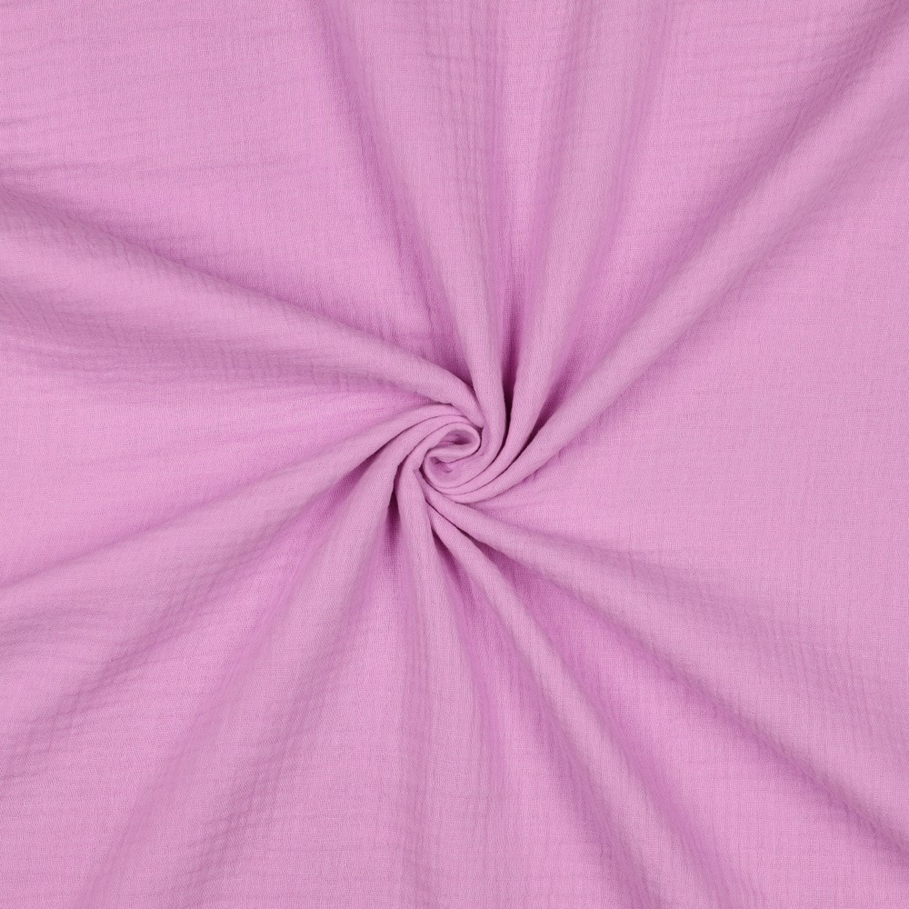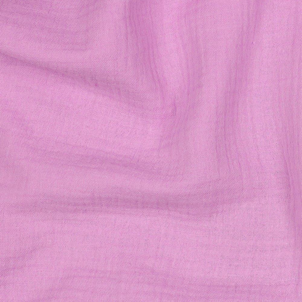 Myk og lett økologisk musselin/double gauze med en naturlig, lett krøllet struktur. Stoffet består av to tynne lag bomull som er festet sammen, noe som gir en luftig og behagelig følelse mot huden.