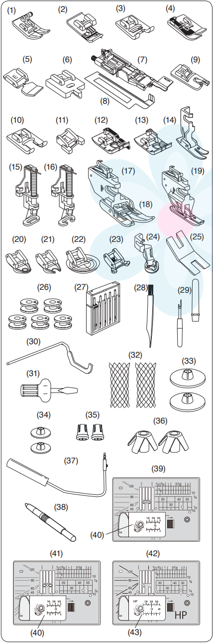 Denne maskinen tilhører Janomes gruppe 1, og nedenfor ser du noen utvalgte trykkføtter og ekstrautstyr tilpasset denne gruppen. Hele sortimentet vi har til gruppe 1 kan du se her.
