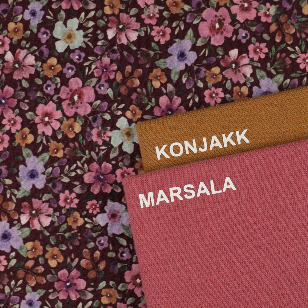 Bomullsjersey er et mykt og behagelig stoff med god stretch og pusteevne. Kvaliteten består av bomull med en liten andel elastan, noe som gir både komfort og fleksibilitet. Stoffet er lett å sy med og perfekt til plagg som skal sitte godt, men samtidig være komfortable å bruke.