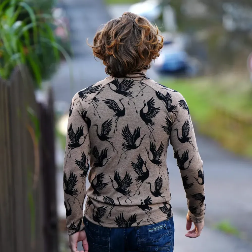 Myk og elastisk mønstret merinoull av høy kvalitet fra Myllymuksut, produsert med fokus på etisk og ansvarlig ull. Stoffet er behagelig mot huden og passer godt til både barn og voksne.