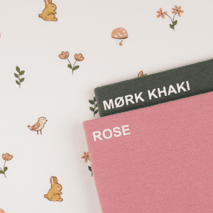 Bomullsjersey er et mykt og behagelig stoff med god stretch og pusteevne. Kvaliteten består av bomull med en liten andel elastan, noe som gir både komfort og fleksibilitet. Stoffet er lett å sy med og perfekt til plagg som skal sitte godt, men samtidig være komfortable å bruke.