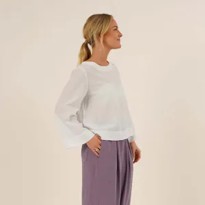 Silke Blouse er et allsidig symønster på bluse med avslappet A-fasong og vide ermer. Den har belegninger i hals, ermer og nederkant som gir et pent uttrykk og enkel konstruksjon. Velg mellom rund eller båthals, og ermelengde til albuen eller 7/8.