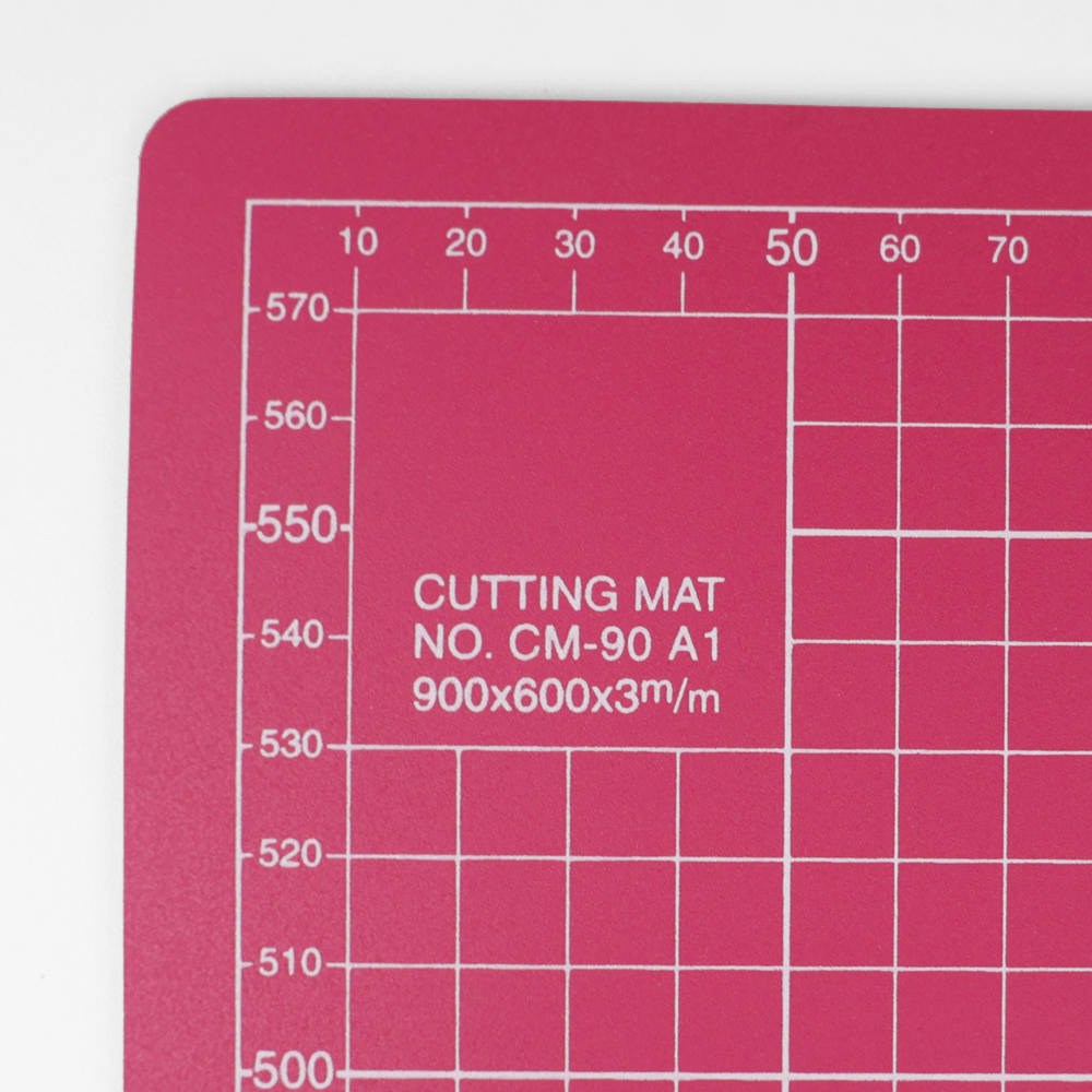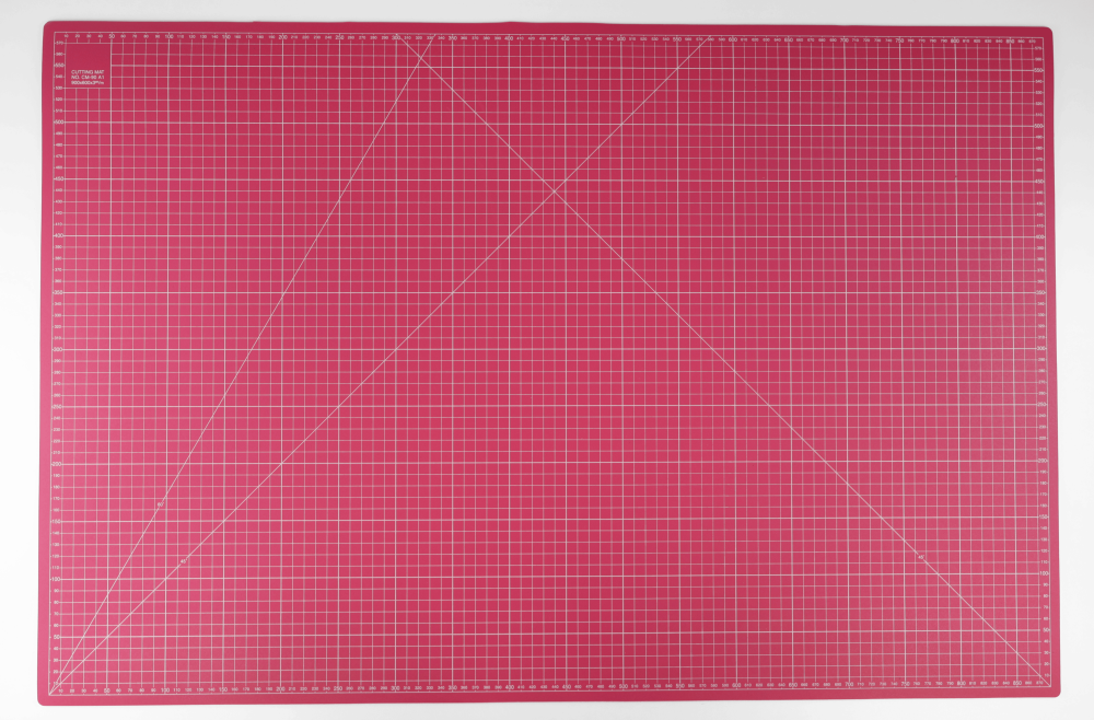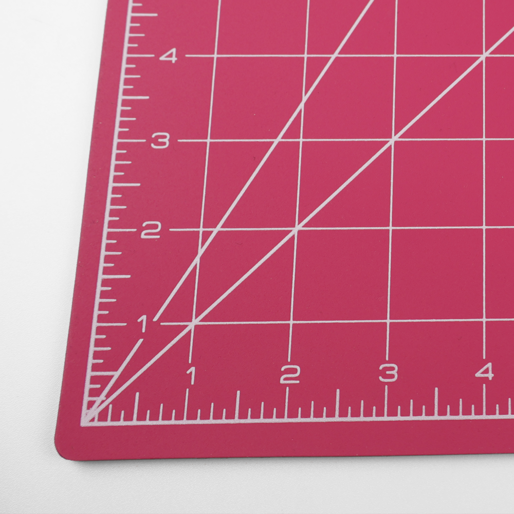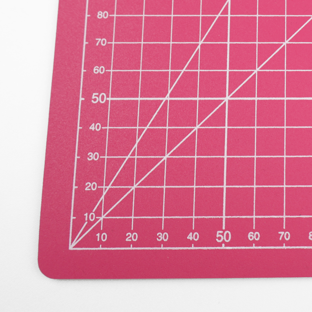 PVC skjærematte, rosa på begge sider. Cm-mål på den ene siden og inch-mål på den andre siden.