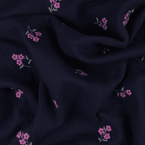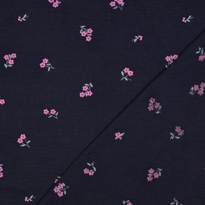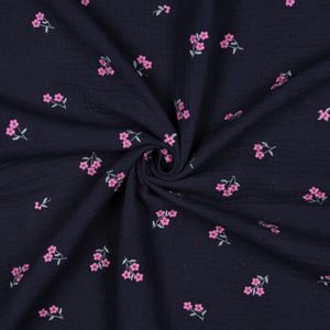 Sweet Flower Navy - Brodert Musselin